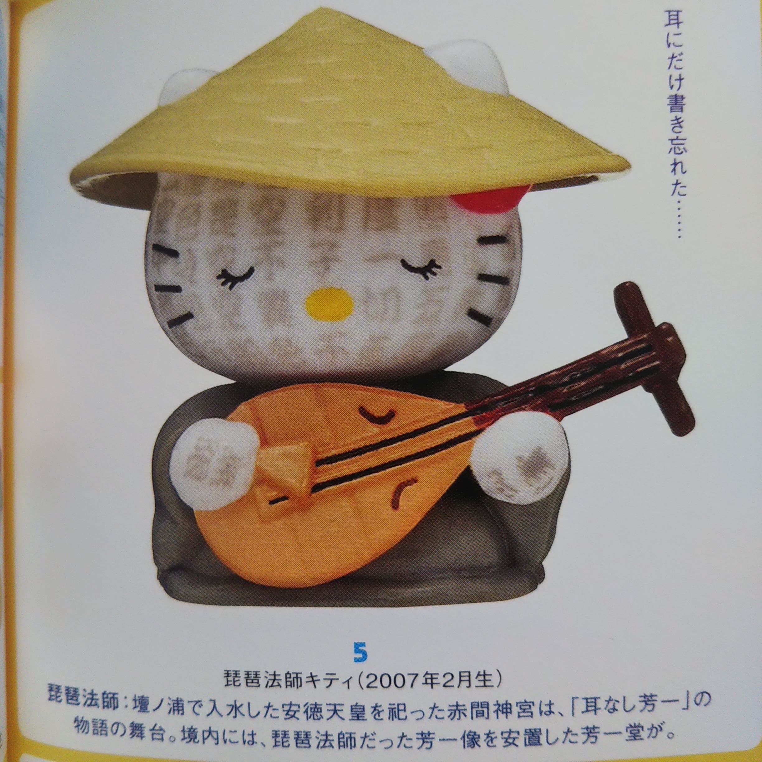 キティちゃん、、金色!っというのも、伊豆の土肥に金山があるからですね。弁財天さまだから、琵琶を持ってますね!